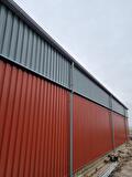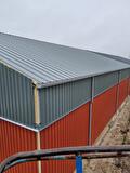 Deze loodsen mochten wij voorzien van naadloze aluminium dakgoten + hemelwaterafvoeren met toebehoren in de kleur grijs, (RAL~7016).