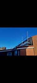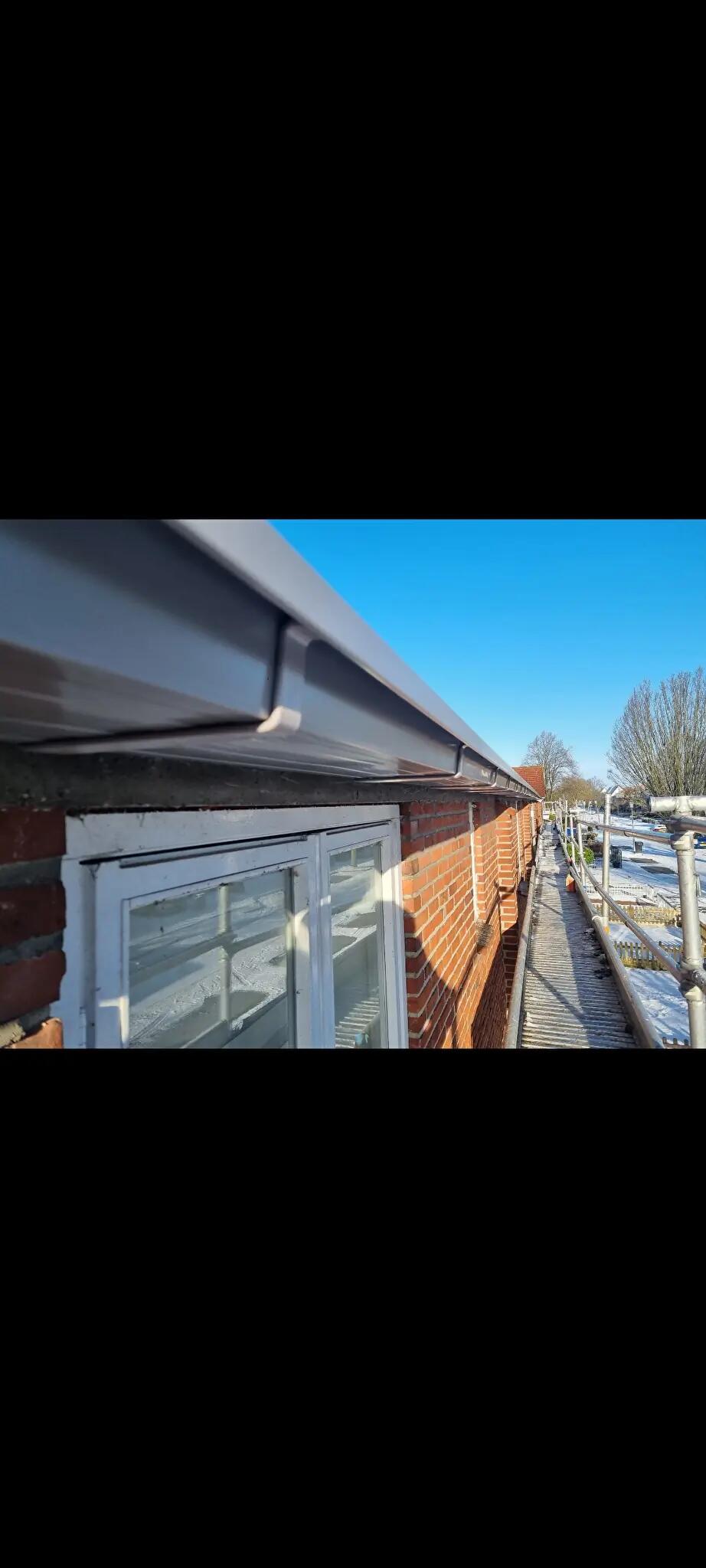 Op dit project mochten wij de oude dakgoten vervangen door nieuwe naadloze aluminium dakgoten in de kleur grijs (RAL~7036).